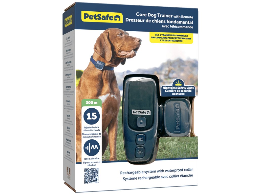 Elektronický výcvikový obojek PetSafe® Core Dog Trainer 300 m je určený pro zlepšení komunikace mezi vámi a vaším psem a pro podporu lepšího chování během výcviku. Funguje jako jemné upozornění, které upoutá pozornost psa a pomáhá ho navádět správným směrem. Pomocí jediného ovladače můžete psa efektivně trénovat i na větší vzdálenost.